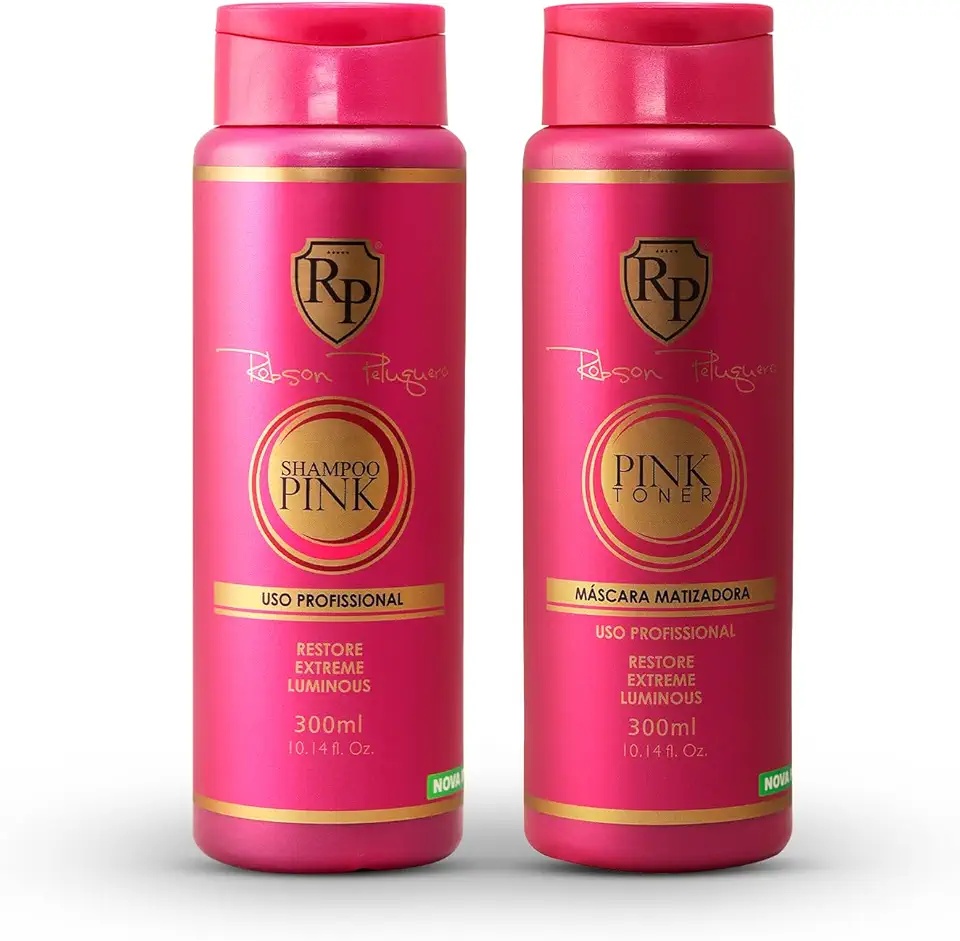 Pink toning kit achieves champagne and neutral blonde tones. Shampoo and gloss hydrate and restore while neutralizing brass. Perfect for soft, rosy-tinted blondes or highlighted hair. 2x10.1 fl oz pack for multiple uses – gentle, effective color correction.